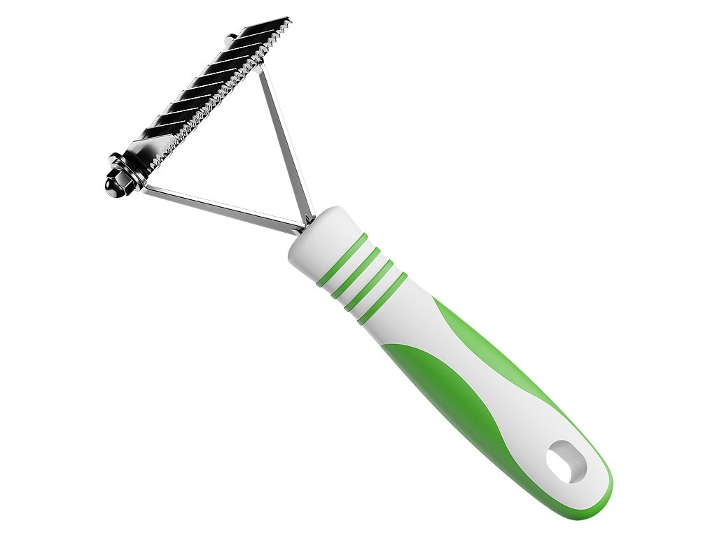 Prořezávač je vybaven 10 zuby z nerezové oceli, které pomáhají šetrně uvolňovat zacuchanou srst a zároveň podporují zdravý vzhled srsti. Je ideální pro pravidelnou údržbu srsti i pro odstranění přebytečné podsady u psů s hustou srstí.