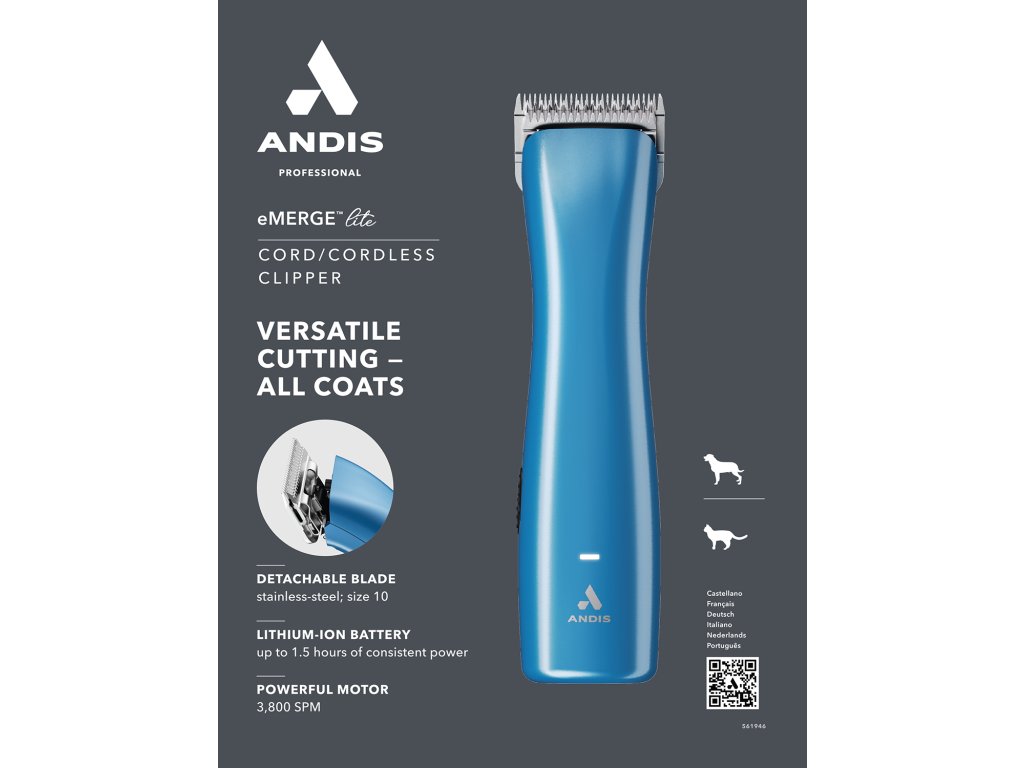 Stříhací strojek ANDIS eMERGE Lite je praktický a výkonný pomocník pro snadnou úpravu srsti přímo u vás doma nebo v profesionálním salonu. Díky silnému jednorychlostnímu rotačnímu motoru zvládne spolehlivě stříhání různých typů srsti – od jemné až po hustou. Je ideální pro kompletní úpravu srsti psů a dalších domácích mazlíčků.