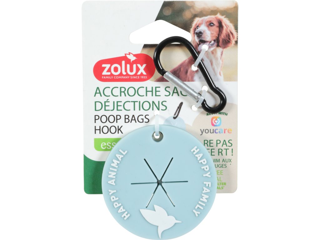 Držák sáčků na exkrementy, který se připevní k vodítku pomocí kovové karabiny pro procházky bez použití rukou.