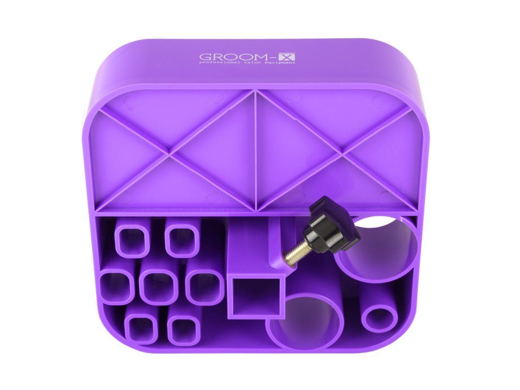 Velkou výhodou je, že uvolňuje pracovní plochu stolu a zároveň chrání vaše nástroje před poškozením. Univerzální uchycení je kompatibilní s většinou držáků o průměru až 25 mm, takže jej snadno využijete u většiny grooming stolů.