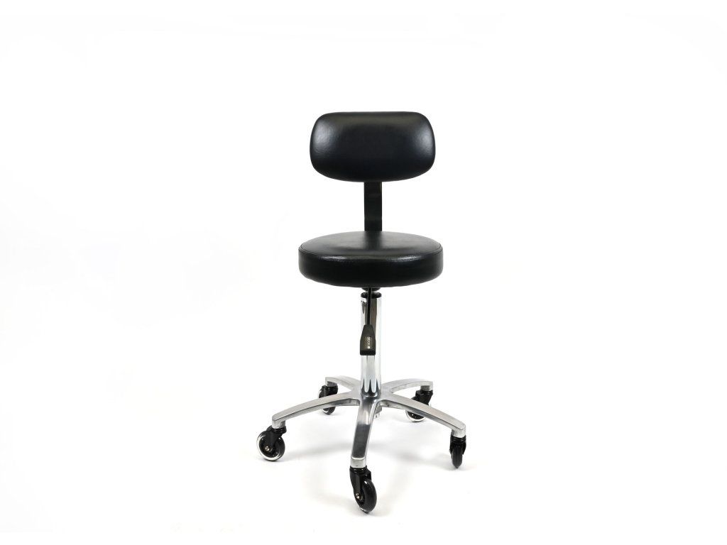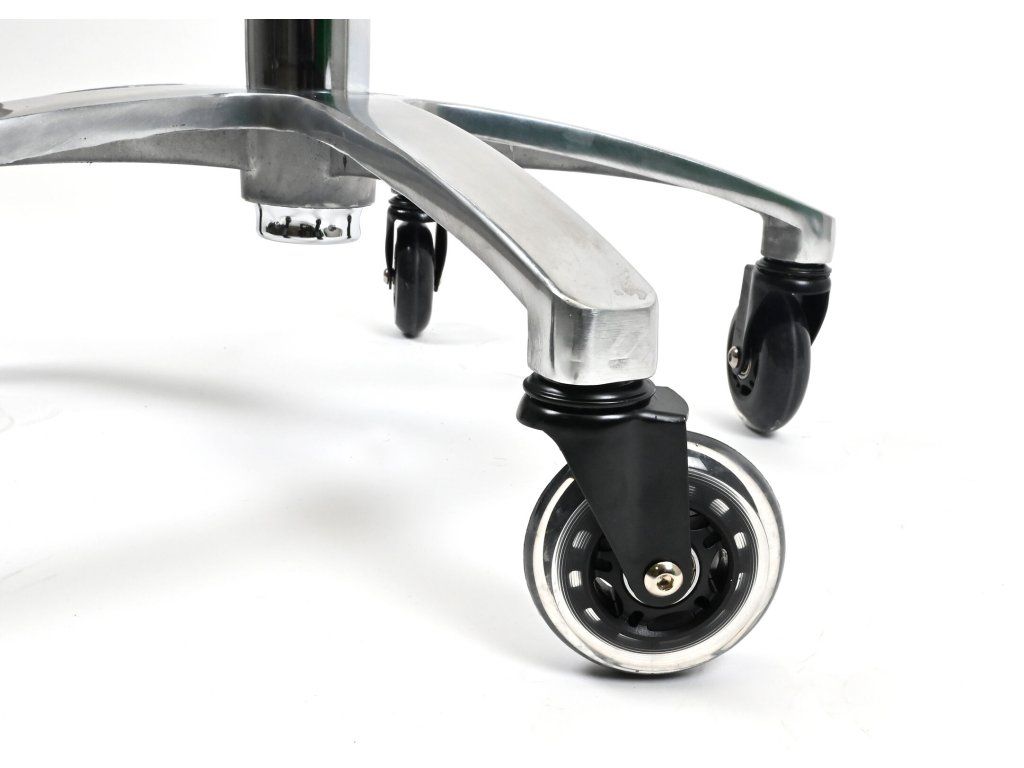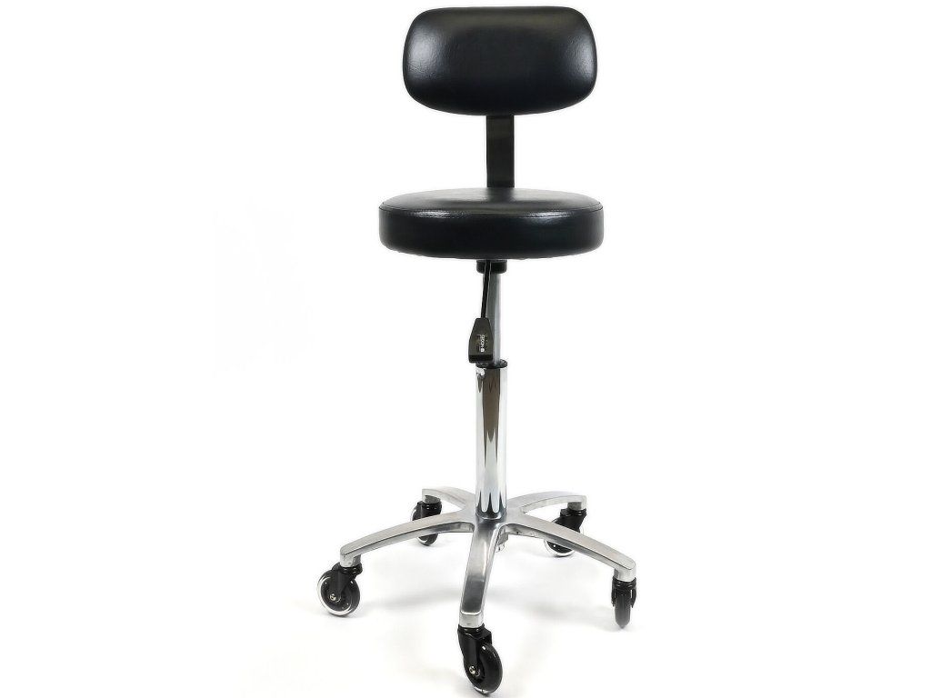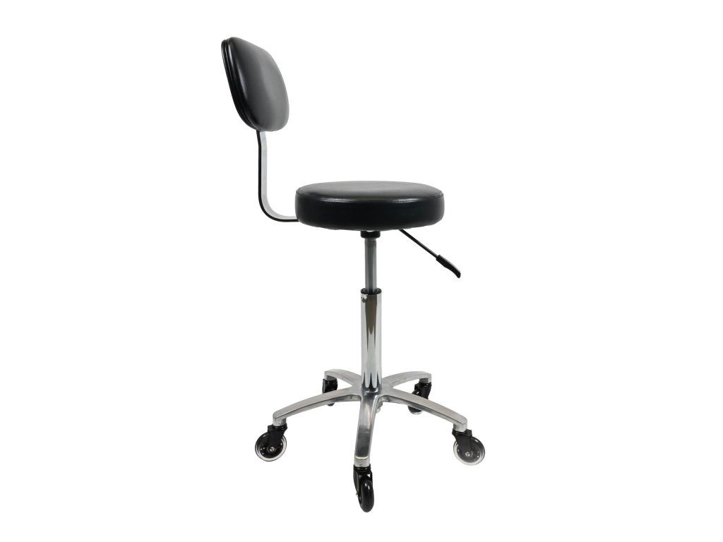 Základem je pevná chromová 5ramenná konstrukce, která zajišťuje výbornou stabilitu a zároveň snadný pohyb po salonu. Výšku sedu lze plynule nastavit v rozmezí 50–70 cm pomocí bezúdržbového plynového pístu, což umožňuje ideální přizpůsobení pracovní pozice.