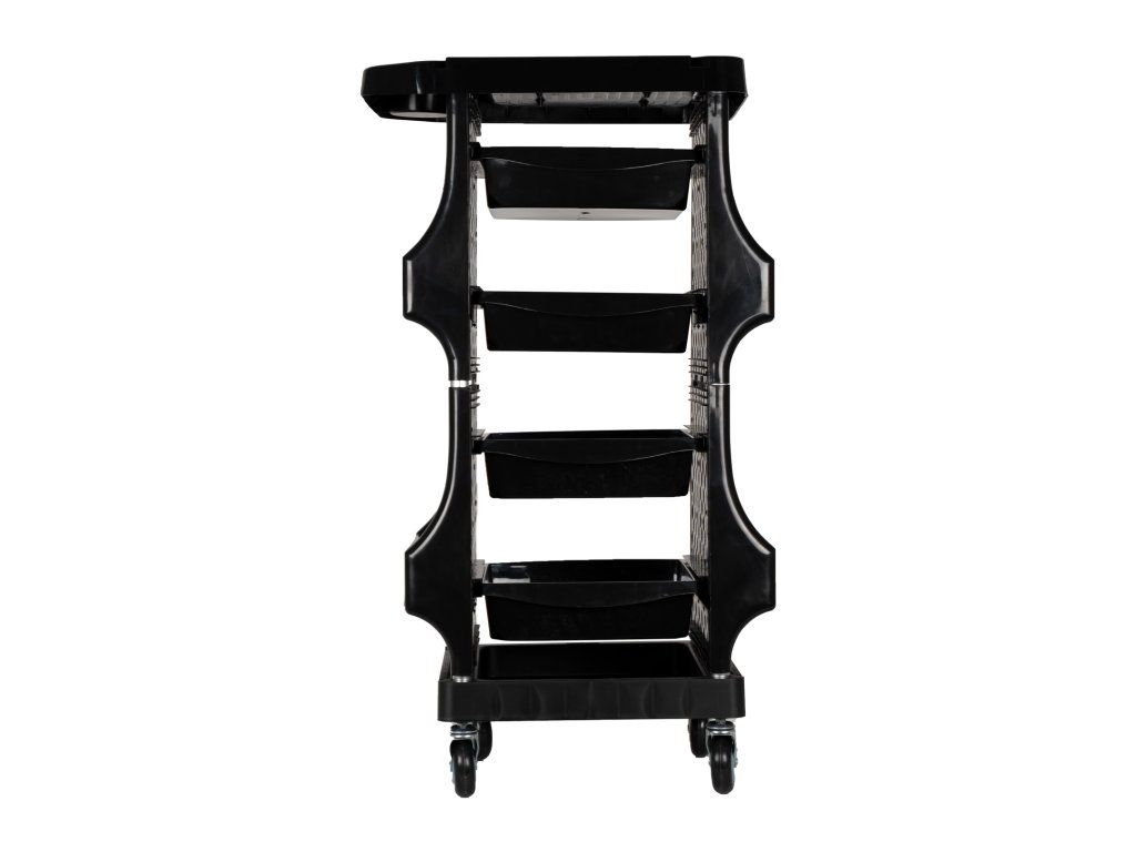 Elegantní černé provedení dodává vozíku profesionální vzhled a skvěle zapadne do každého grooming salonu.
