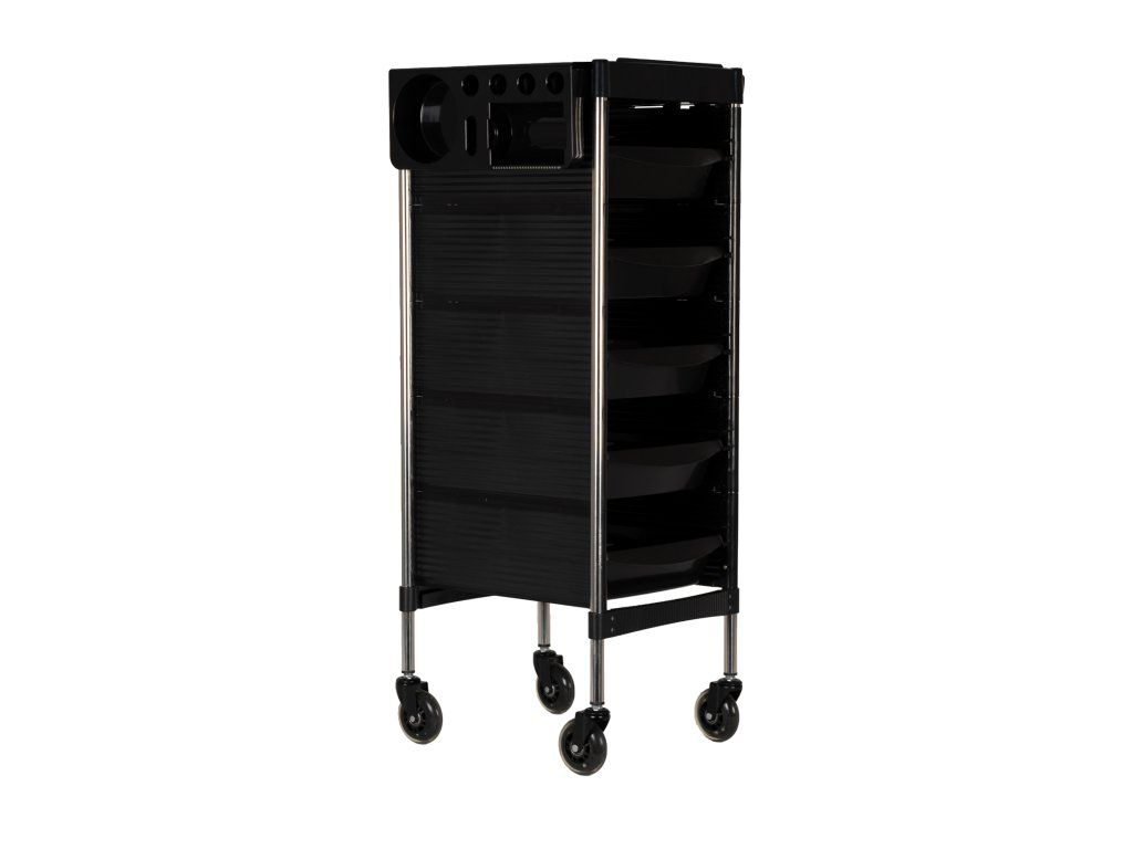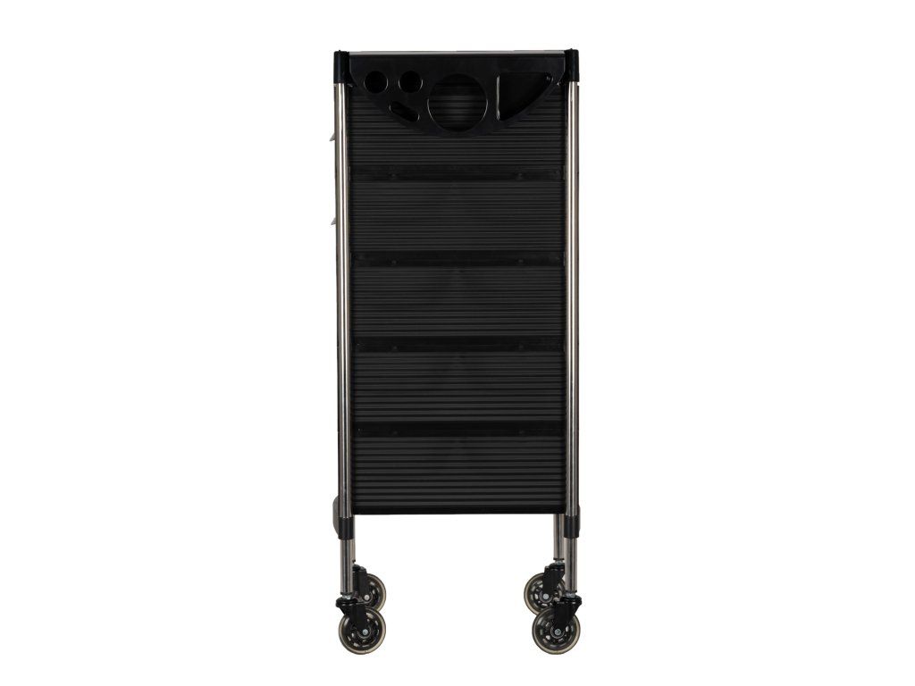 Snadnou manipulaci zajišťují 4 otočná kolečka s uzavřenou konstrukcí, která se nezanáší chlupy a umožňují plynulý pohyb bez zasekávání. Elegantní černý design působí profesionálně a hodí se do každého grooming salonu.