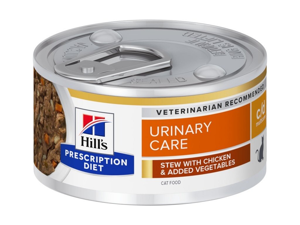 Hill's Prescription Diet c/d Multicare krmivo pro kočky s kuřecím masem je lahodné dušené jídlo, které bylo vyvinuto na základě vědeckých poznatků s cílem řešit hlavní příčiny močových potíží, včetně onemocnění dolních močových cest u koček (FLUTD).
