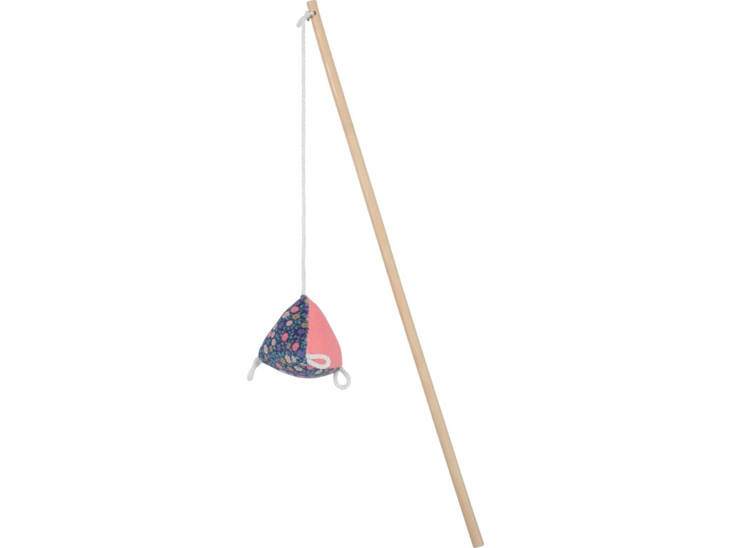 Hračka pro kočky s šantou kočičí, bambusová udice, květinový vzor.