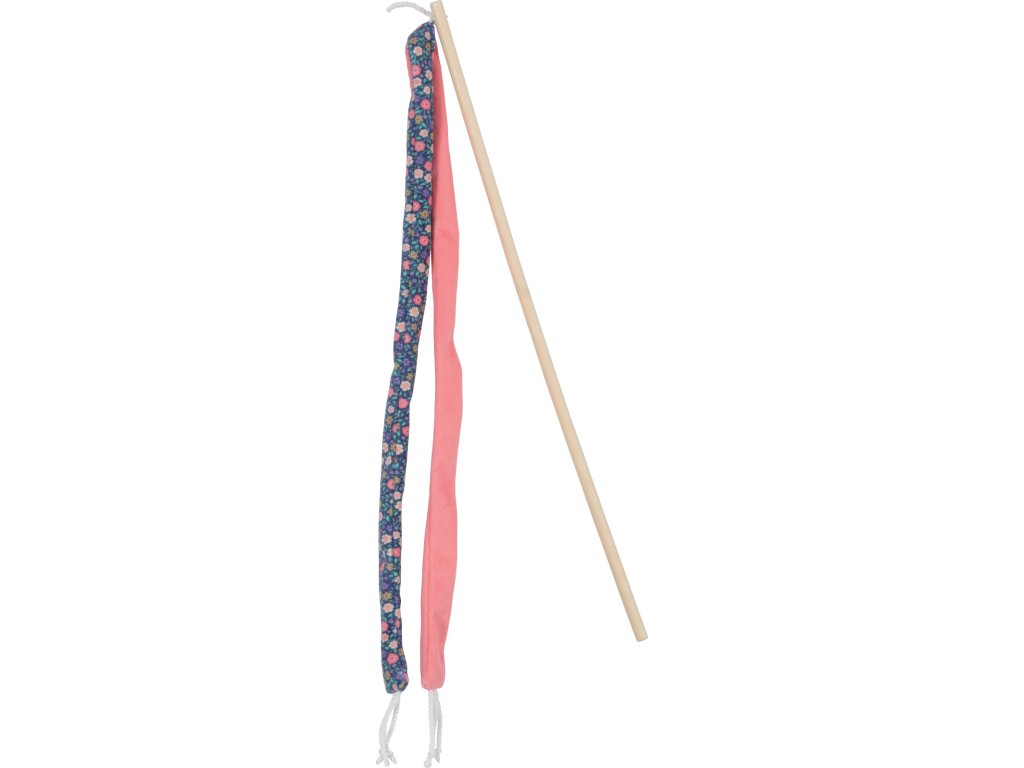 Hračka pro kočky - bambusová udice se stuhami a šantou kočičí, květinový vzor.