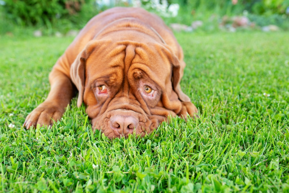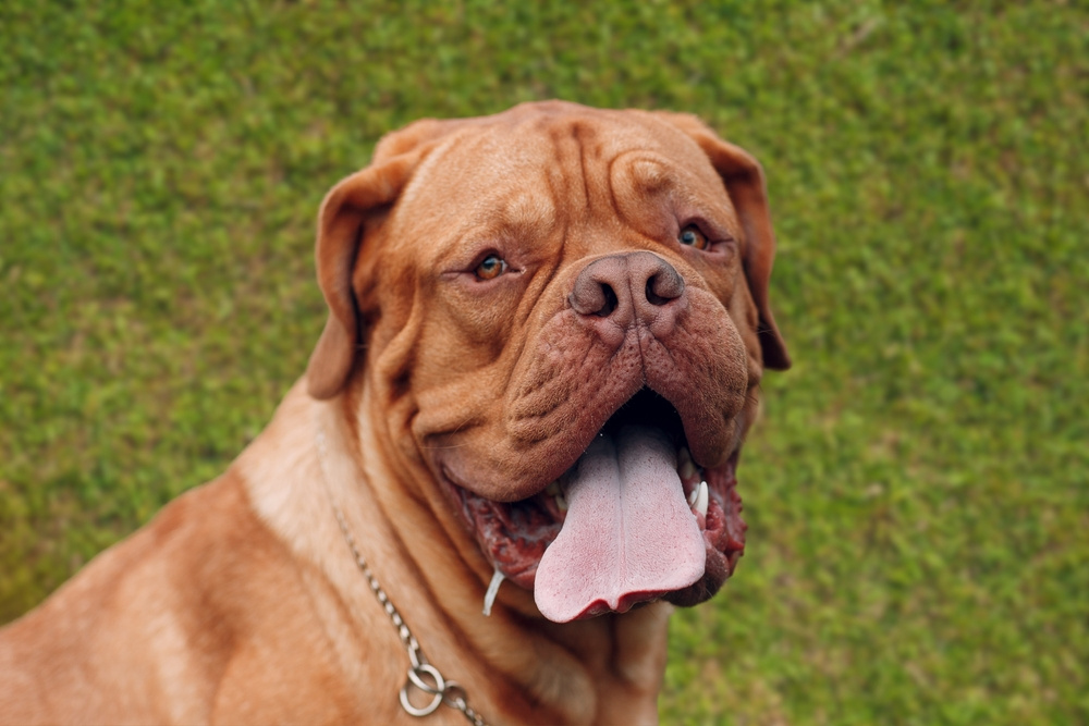 Bordeauxská doga má krátkou a hladkou srst v jednobarevných odstínech žluté nebo mahagonové. Přípustné jsou dokonce masky a malé bílé odznaky.