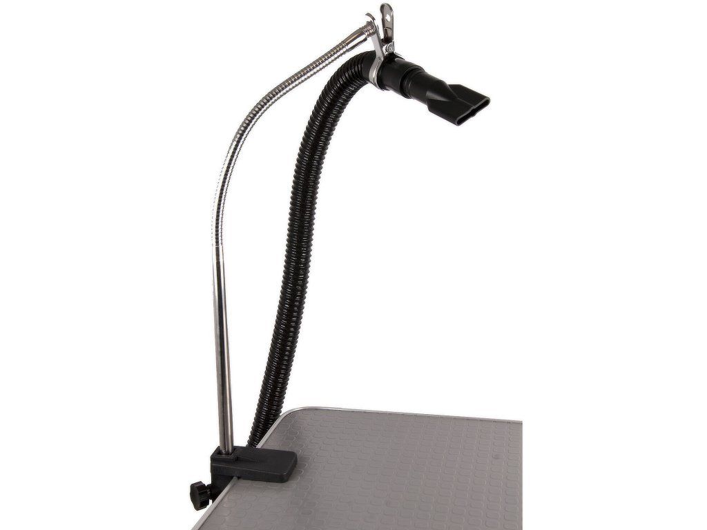 Držák lze snadno upevnit na většinu grooming stolů a poskytuje spolehlivé uchycení bez pohybu během práce. Ideální volba pro profesionální groomery, kteří chtějí spojit komfort, přesnost a efektivitu.