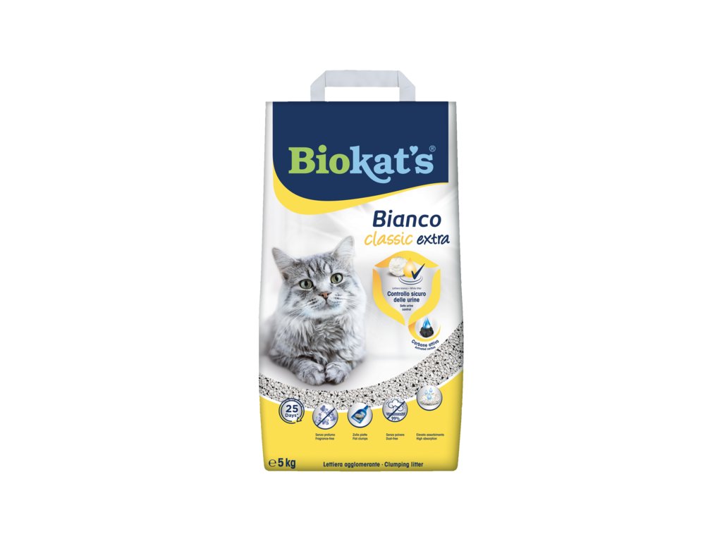 Biokat´s Bianco extra je prírodné hrudkujúce stelivo bielej farby. Skvelo hrudkuje a má minimálny obsah prachu.