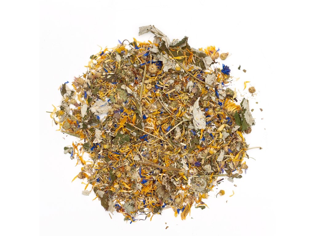 Zloženie: kvet nechtíka, list malinovníka, vňať yzopu, kvet harmančeka, vňať pamajoránu, kvet nevädze.