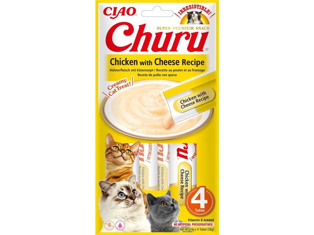 Churu mäsové pyré pre mačky s kuracím mäsom z farmy a syrom. Lahodný, prírodný maškrt krémovej konzistencie bez obilnín. Zdravé maškrtenie s nízkym obsahom kalórií, bez konzervantov, chemických aróm, bez farbív a umelých dochucovadiel. Vďaka možnosti podávať extra chutnú grain free mäsovú pochúťku na spôsob mačacej kapsičky priamo z ruky objavíte nový spôsob odmeňovania.