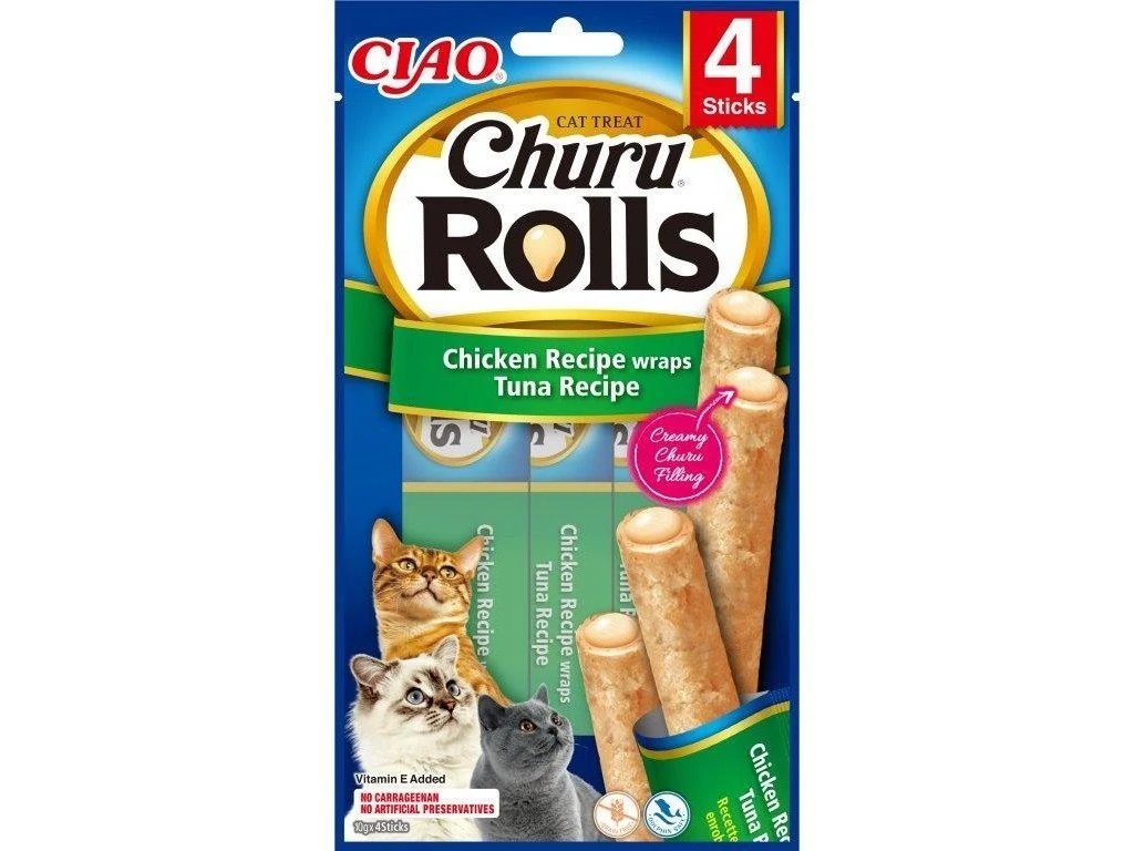Churu Cat Rolls Chicken wraps & Tuna cream 4x10g