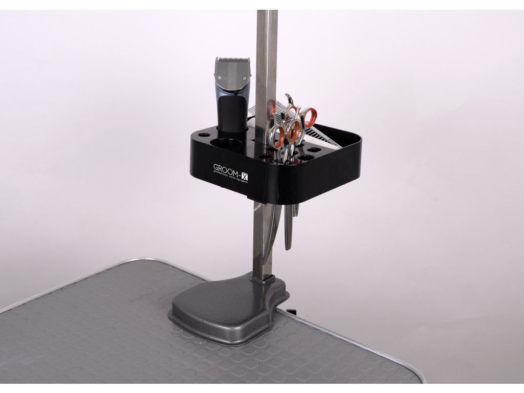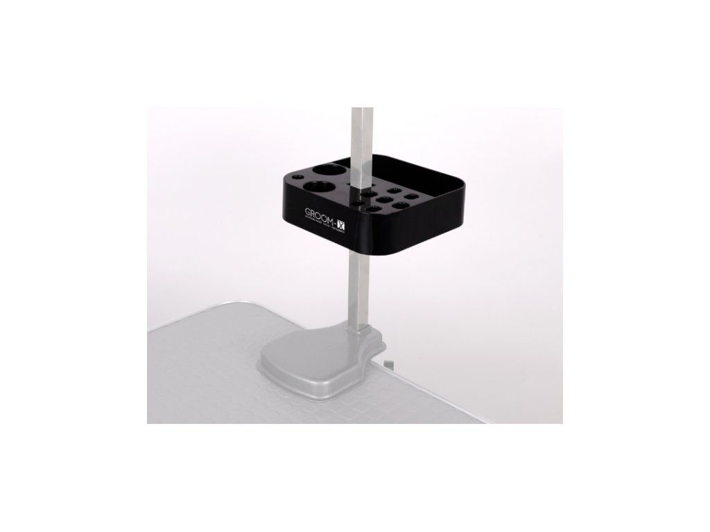 Veľkou výhodou je, že uvoľňuje pracovnú plochu stola a zároveň chráni vaše nástroje pred poškodením. Univerzálne uchytenie je kompatibilné s väčšinou držiakov s priemerom až 25 mm, takže ho jednoducho využijete pri väčšine grooming stolov.