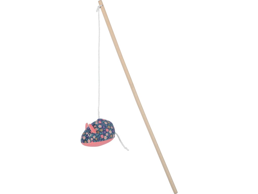 Hračka pre mačky s kocúrnikom, bambusová udica, kvetinový vzor.