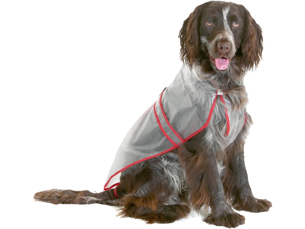 Jednoduchá, priehľadná pršiplášť pre psov, ktorá je odolná voči vode aj vetru. Pršiplášť je vyrobený z veľmi pevného PVC materiálu, je skladný a výborný na cesty.