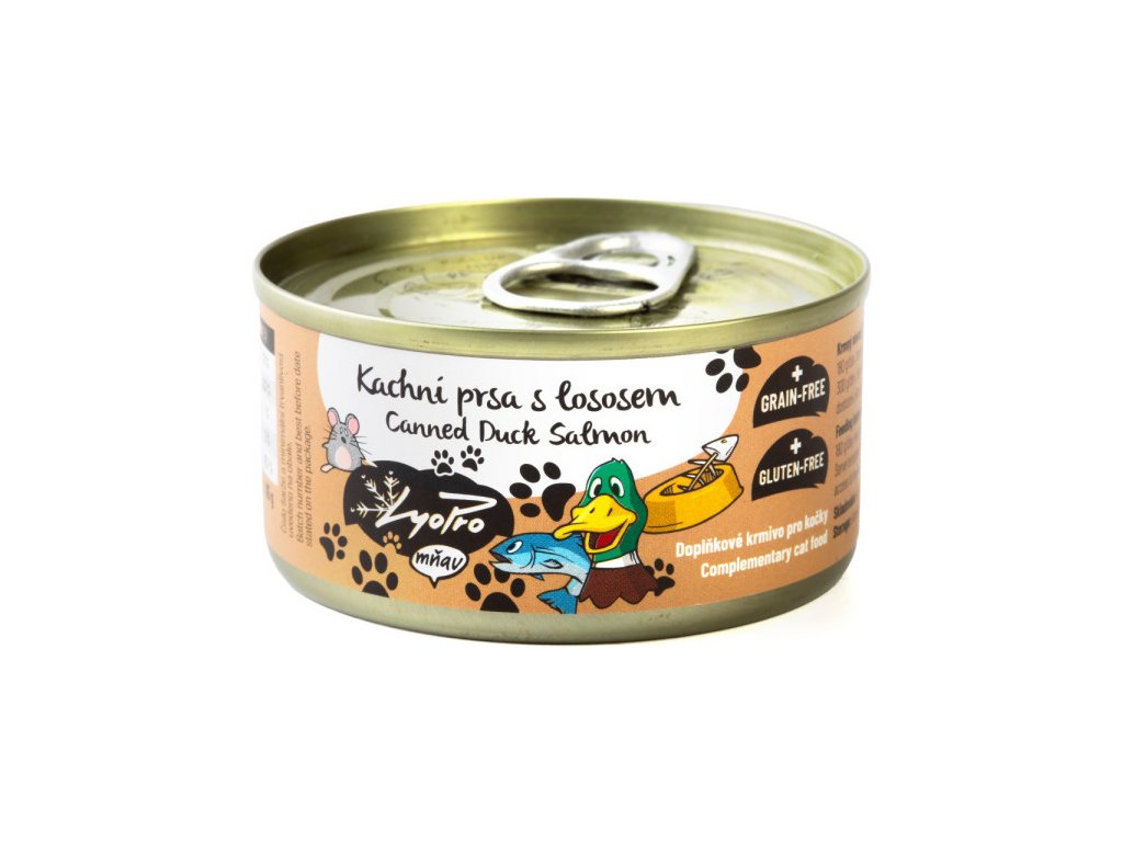 Kvalitné kačacie prsia s lososom, ktoré sa rozplývajú na jazyku, zaručene poláskajú chuťové poháriky vášho mačacieho priateľa.