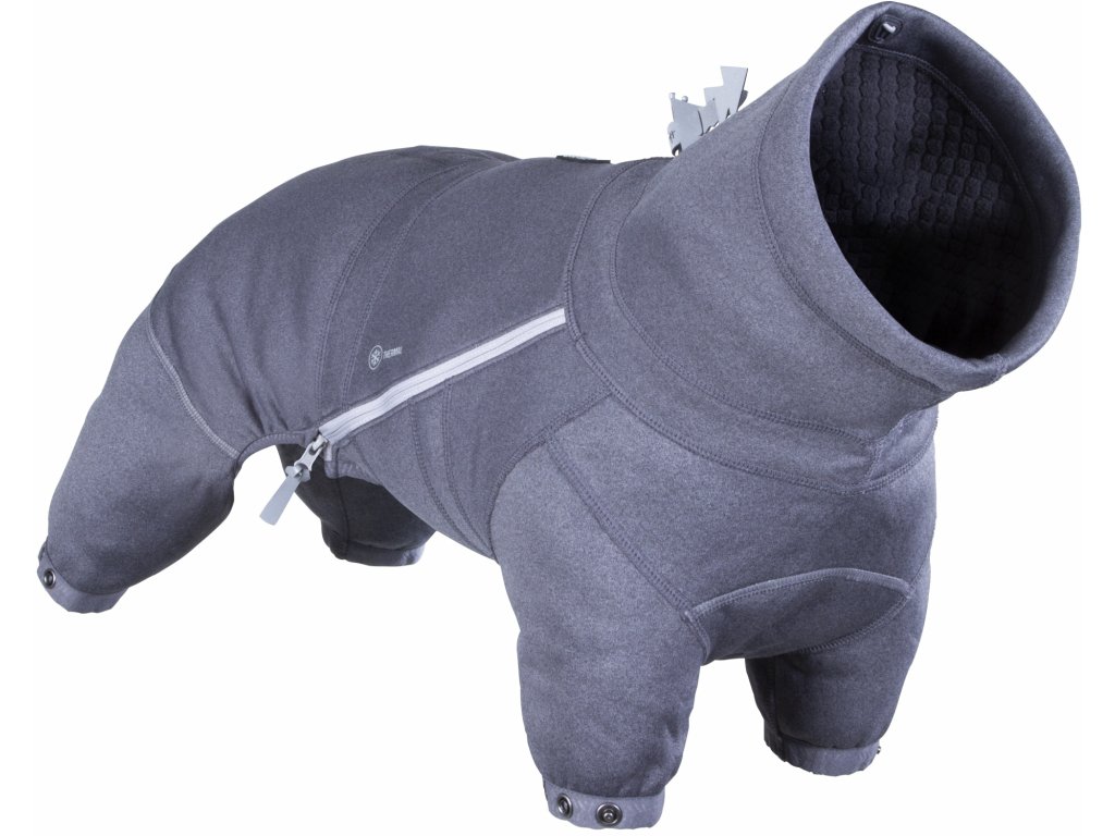 Konštrukcia kombinézy na polozips umožňuje rýchle a jednoduché obliekanie a vyzliekanie. Na zadných a predných švoch sú integrované odrazky a navyše elegantná odnímateľná reflexná figúrka pre väčšiu bezpečnosť v rušných mestských oblastiach, keď je vonku tma. Midlayer Overal slúži ako stredná vrstva, ale je ideálny aj pre aktívnych psov pred a po výstavách, psích športoch a iných namáhavých aktivitách.