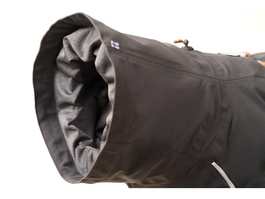 Táto tenká pláštenka nemá látkovú podšívku, ale jej povrch je laminovaný hladkou vodeodolnou vrstvou. Vodeodolnosť proti dažďu je premyslená do najmenšieho detailu. Otvor na pripevnenie vodítka sa dá zavrieť a golier utiahnuť za ušami, aby psíkovi nenatiekla voda dovnútra. Pláštenka má lepené švy pre vyššiu vodeodolnosť.