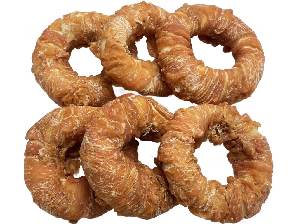 Donut z bielej byvolej kože obalený kuracím mäsom.