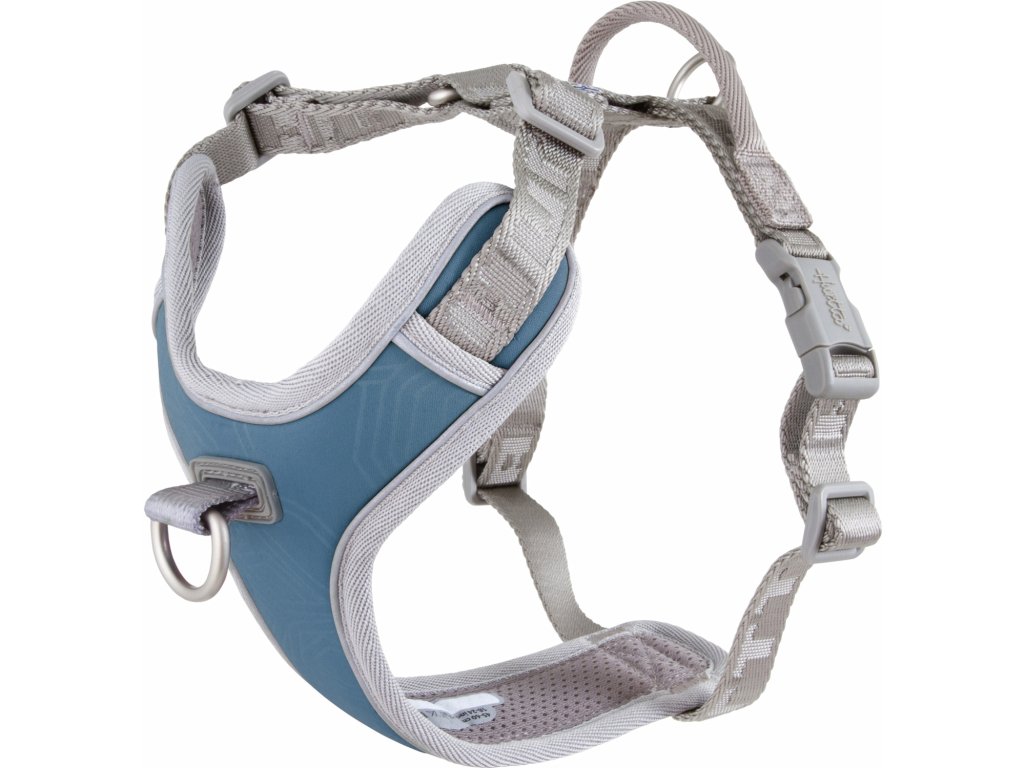 Kvôli lepšiemu prispôsobeniu pre psy rôznych plemien a veľkostí je postroj navyše vybavený nastaviteľnými prvkami v oblasti krku. Na vnútornej strane postroja sa nachádza štítok, na ktorý môžete napísať svoje kontaktné údaje, ak by ste ho na cestách za dobrodružstvom niekde stratili.