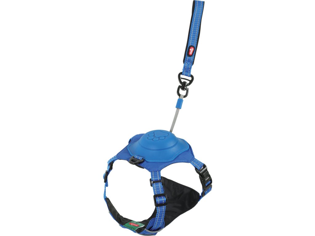 Postroj pre psy s patentovaným integrovaným samonavíjacím vodítkom o dĺžke 1,3 m.