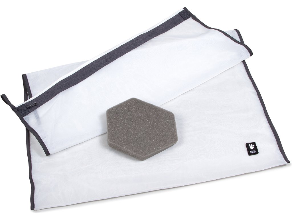 Vlasy a vlákna, ktoré sa nahromadia vo vrecku, môžete jednoducho vybrať a vyhodiť do zmiešaného odpadu (nie do bioodpadu, aby mikroplasty neskončili v prírode). Šikovný malý kúsok peny pomáha počas prania zachytiť psie chlpy, takže sa nedostanú do práčky.