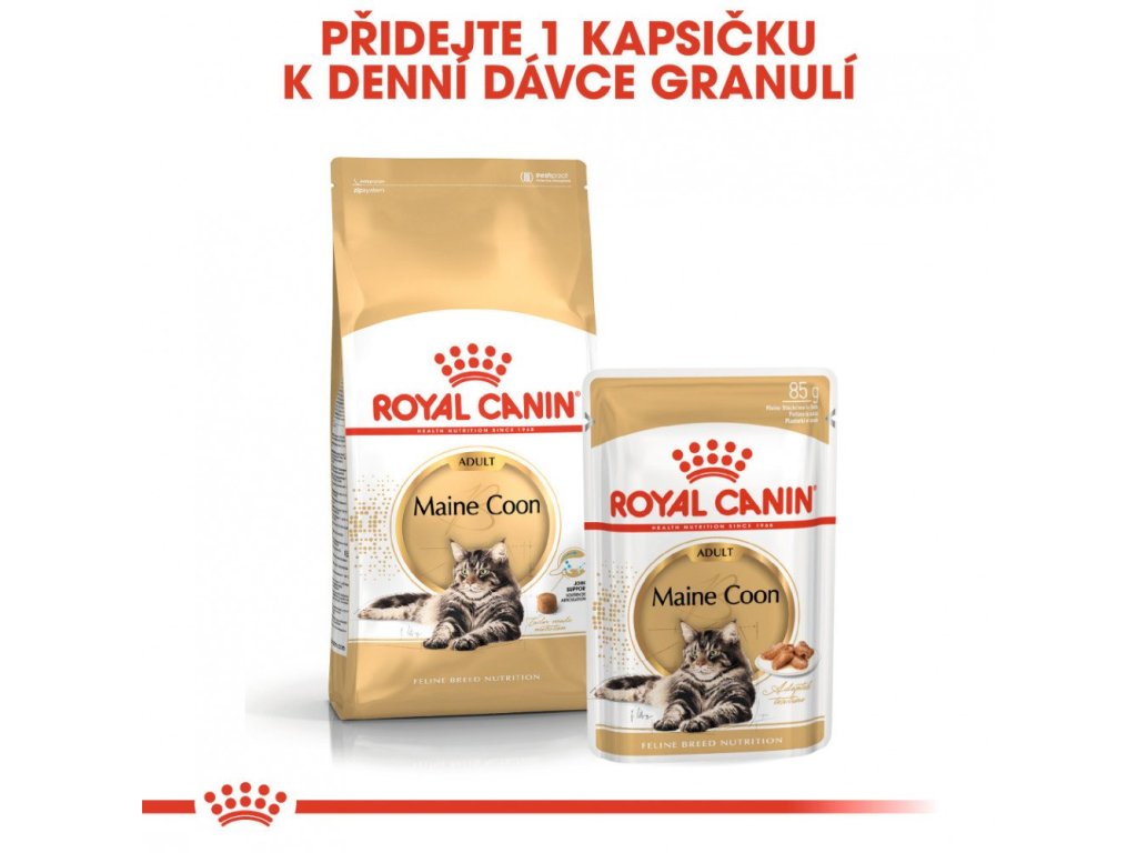 Jedno vrecúško, ktoré vašej mainskej mývalej mačke dodá všetky potrebné živiny a navyše bude skvele chutiť. To je vrecúško Royal Canin Maine Coon Adult obsahujúce tenké plátky v šťave, po ktorých sa váš mačací miláčik bude môcť utĺcť.