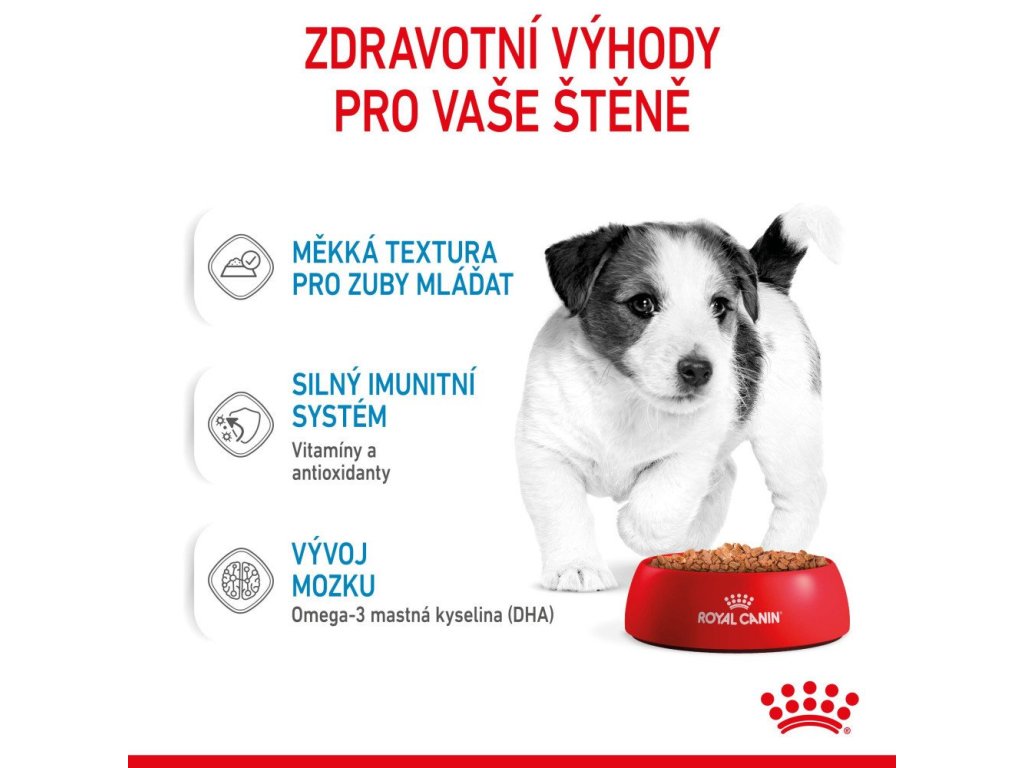 Zloženie kapsičky pre malé šteniatka Royal Canin Mini Puppy je vytvorené tak, aby uspokojovalo všetky nutričné potreby malých šteniatok mladších ako 10 mesiacov, ktoré budú v dospelosti vážiť do 10 kg. Prirodzená obranyschopnosť vášho šteniatka sa stále vyvíja, a preto kapsička pre malé šteniatka obsahuje exkluzívny komplex antioxidantov, vrátane vitamínu E, ktorý podporuje nezrelý imunitný systém vo vývoji. Krmivo tiež obsahuje prospešné živiny, ktoré podporujú celkové zdravie tráviaceho traktu, ktorého súčasťou je aj rovnováha črevnej mikroflóry.