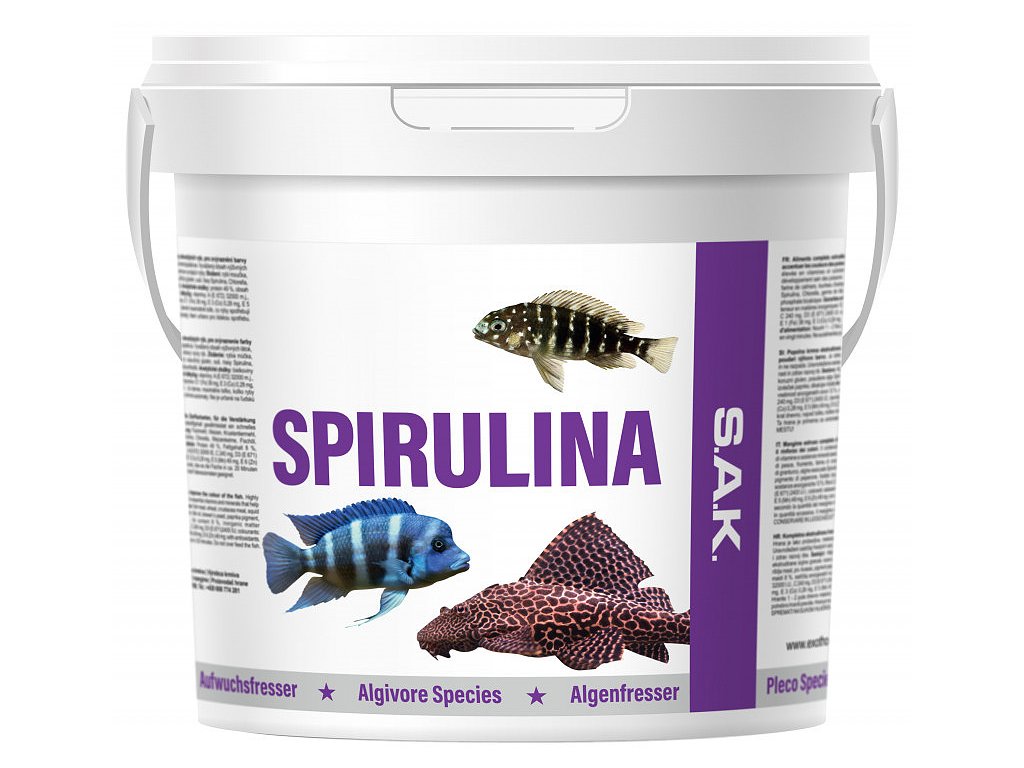 Kompletné extrudované krmivo s vyšším podielom rias, predovšetkým Spiruliny. Krmivo je určené pre riasožravé cichlidy a sumce. Odporúča sa niekoľkokrát týždenne pridávať S.A.K. Spirulina aj ďalším rybám, napr. terčovcom. Je vysoko stráviteľné, mäkké, pomaly klesá ku dnu, nezakalí vodu a nerozpadá sa. Vyvážený obsah výživných látok, vysoký obsah vitamínov a minerálnych látok zaisťuje optimálny rast a zdravý vývoj rýb.