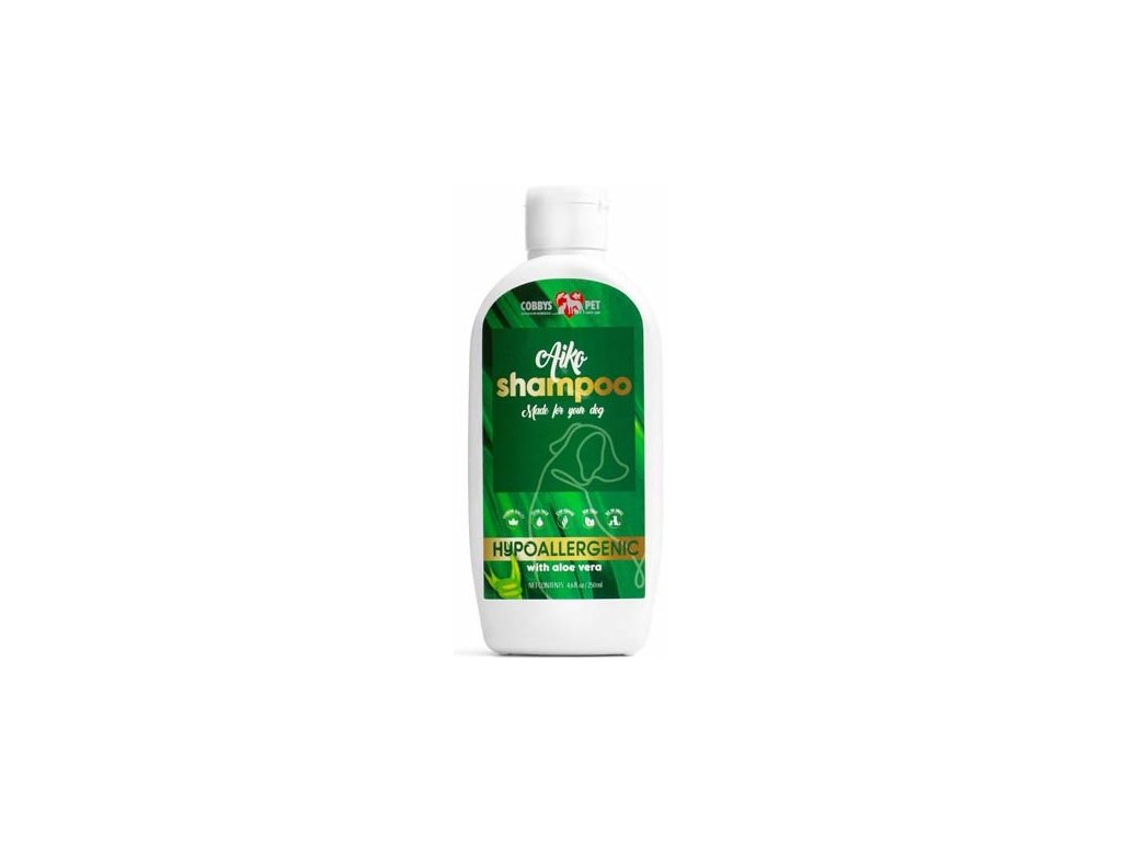 Oblasť a spôsob použitia a dávkovanie: COBBYS PET AIKO HYPOALERGÉNNY ŠAMPÓN sa odporúča najmä pre psy s citlivou pokožkou. Starostlivosť o srsť a pokožku bez narušenia prirodzeného obranného systému pokožky. Aloe Vera hydratuje pokožku, arganový olej je bohatý na Omega-6 esenciálne mastné kyseliny, ktoré stimulujú a regenerujú pokožku, vďaka čomu je pružná a hebká. Zložky v šampóne vyživujú a upokojujú pokožku. Šampón s kvetinovou vôňou. Pripravíme roztok zo šampónu a vlažnej vody. Odporúčané množstvo je 15 ml šampónu/10 kg telesnej hmotnosti. Množstvo šampónu potrebné na kúpanie psa nalejte do 0,5 litra vlažnej vody. Pre väčšie psy použite 40-70 ml do 1,5 litra vody. Pripravený roztok jemne vmasírujeme dopredom navlhčenej srsti zvieraťa. Rozpustené nečistoty a šampón opláchnite veľkým množstvom vlažnej vody.