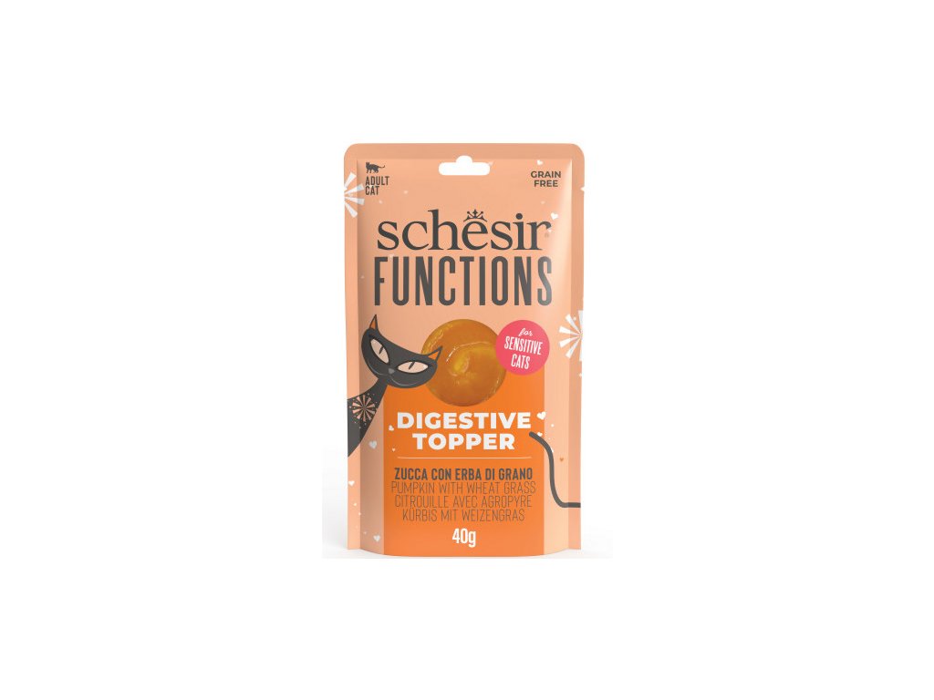 Schesir Functions je rad funkčných topperov vytvorených na doplnenie mačacej stravy hydratáciou a špecifickými výhodami.
