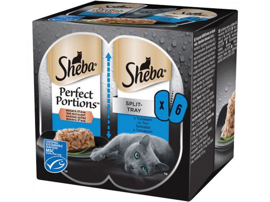 Lahodné kapsičky Sheba Perfect Portions obsahujú kúsky tuňáka. Tieto mäsové kúsky sú naložené v šťave alebo v želé. Každá receptúra kapsičiek Sheba ponúka nové chuťové možnosti a kombinácie. Kapsičky pre mačky Sheba predstavujú skvelé obohatenie jedálnička každej mačacej šelmy. Kapsičku je možné použiť na raňajky, obed aj večeru. Kapsičky Sheba sú veľmi obľúbené a mačkám chutia.