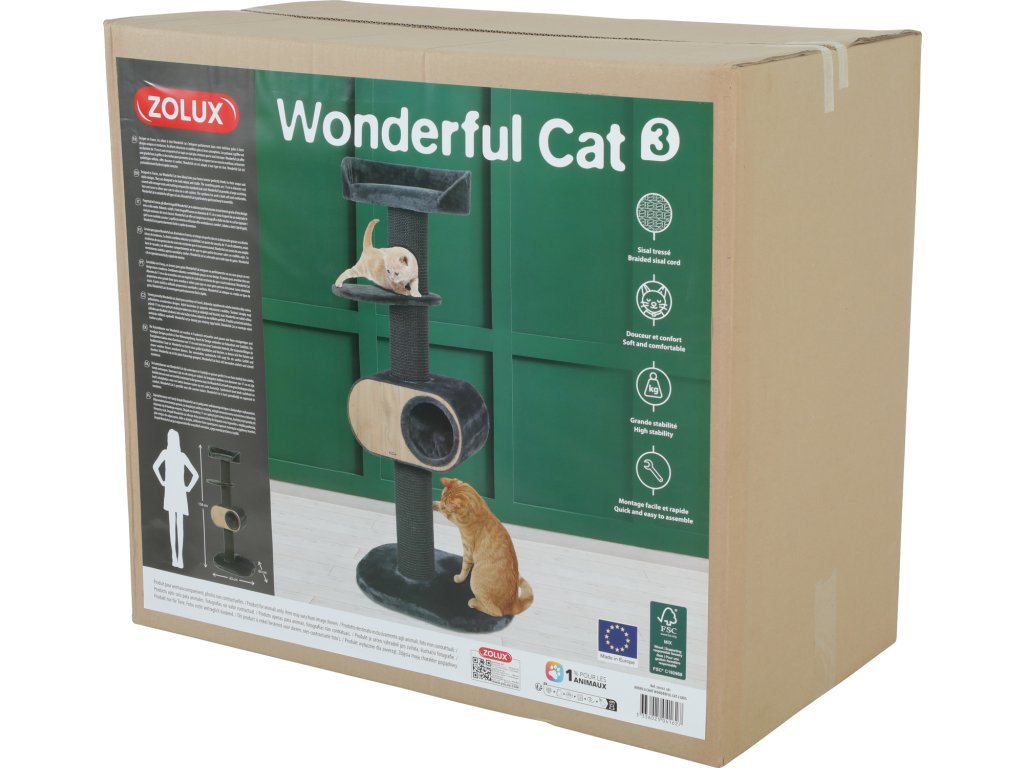 Škrabadlo WONDERFUL CAT 3 je 4 v 1: škrabadlo - 3 časti, jaskyňa (domček) s vankúšikom, kožušinová odpočinková plošina a pelech.