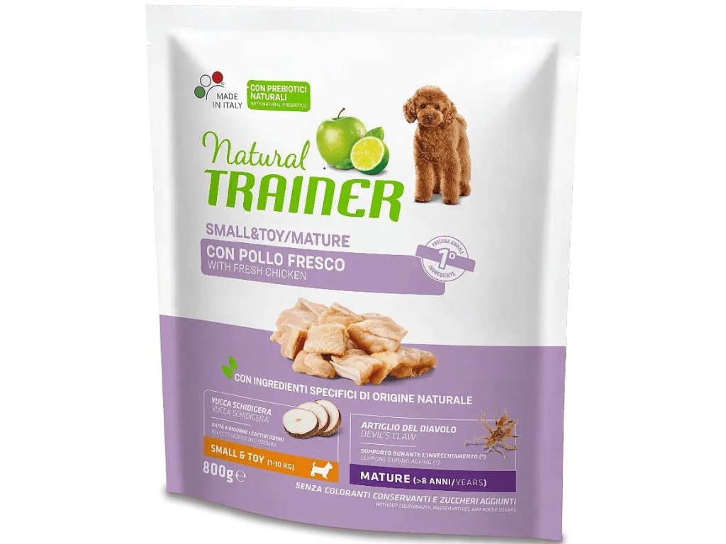 TRAINER Natural Mini Mature je kompletné a vyvážené krmivo pre staršie psy malých plemien staršie ako 8 rokov.