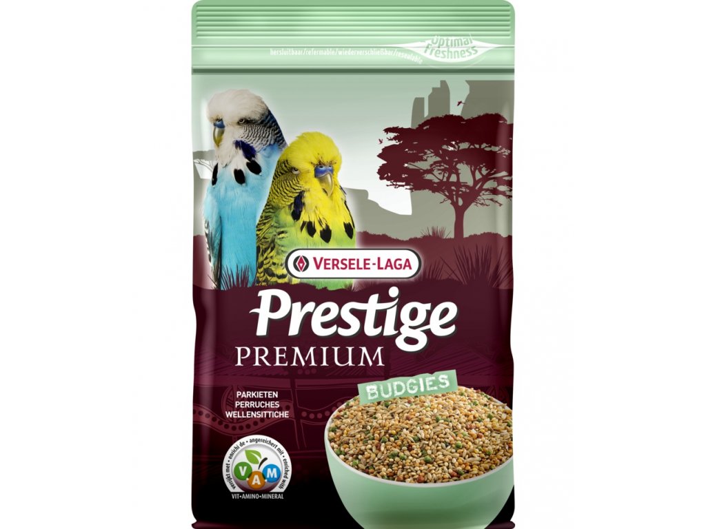 Prestige Premium pre andulky vytvára tie najlepšie predpoklady pre pevné perie, krásne, prírodné farby a dlhý a zdravý život. Obsahuje všetky dôležité vitamíny. Potrebný prísun vitamínov, aminokyselín a minerálnych látok zabezpečujú zrná a ovocie, Florastimul® zabezpečuje optimálnu kondíciu a trávenie. Chia semienka dopĺňajú správny pomer vápnika a fosforu.
