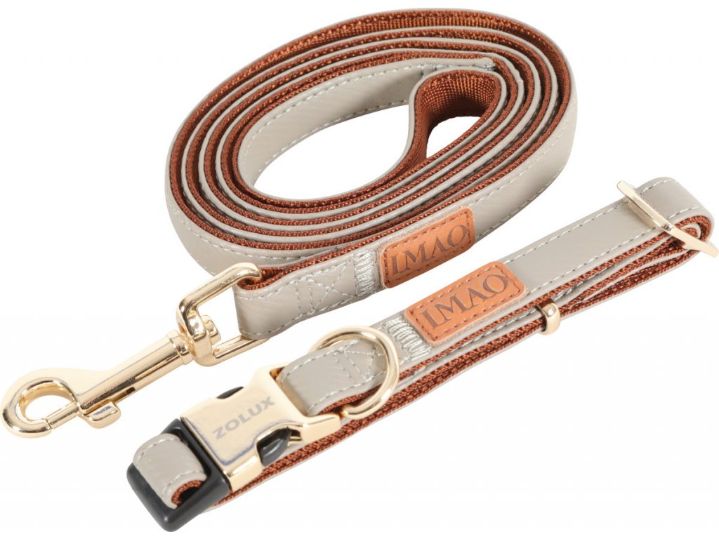 Vodítko opatrené pozláteným plastovým zapínaním a pozlátenými kovovými doplnkami. Na pracke je vygravírované logo ZOLUX. Kožená nášivka s logom IMAO.