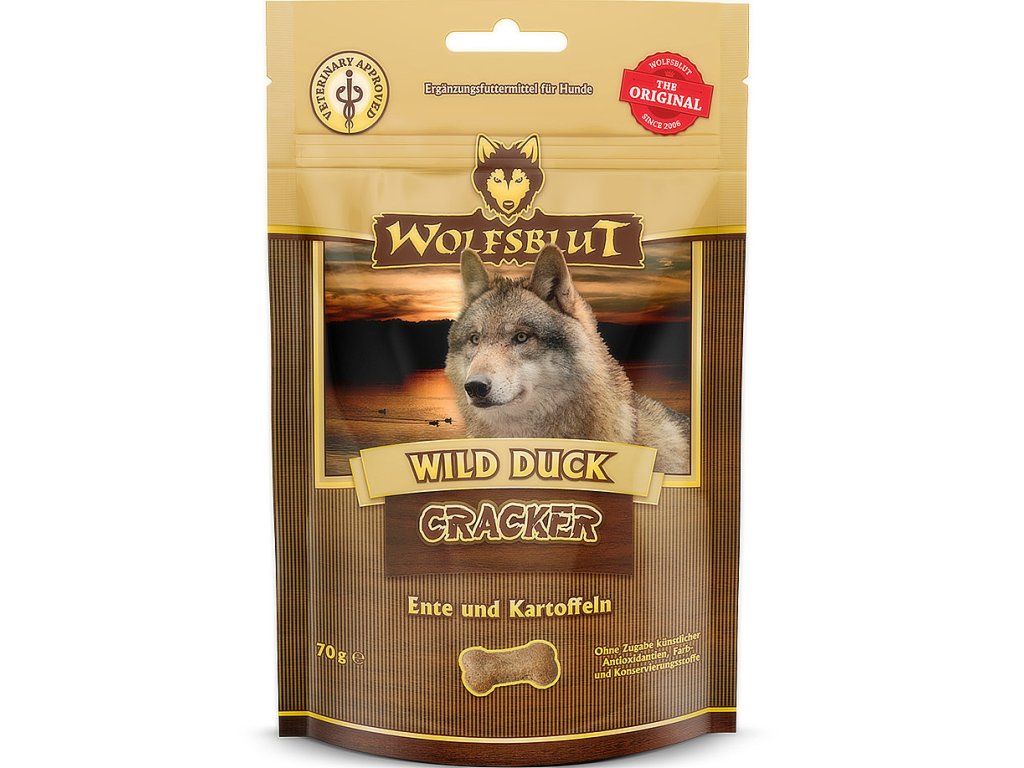 Wild Duck Crackers od Wolfsblut dopĺňajú každodennú stravu vášho psa. Sú zdravou odmenou alebo malým jedlom na cesty. V kombinácii s krmivom pre vlčiu krvnú skupinu poskytujú Wild Duck Crackers vášmu psovi všestranne zdravú a druhovo vhodnú stravu. Všetky ingrediencie v tejto jedinečnej kombinácii slúžia na udržanie zdravia vášho zverenca.