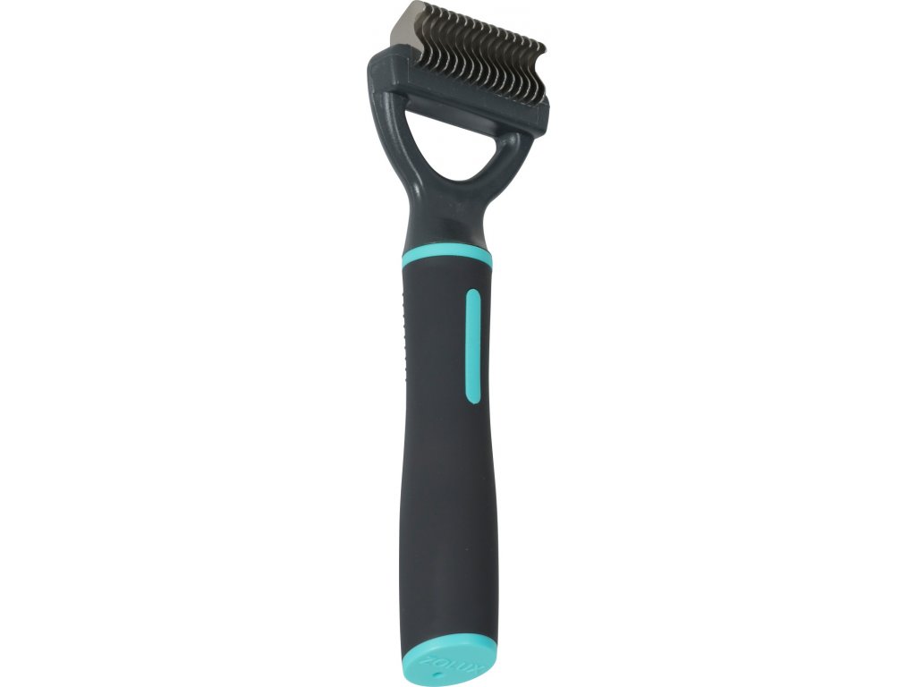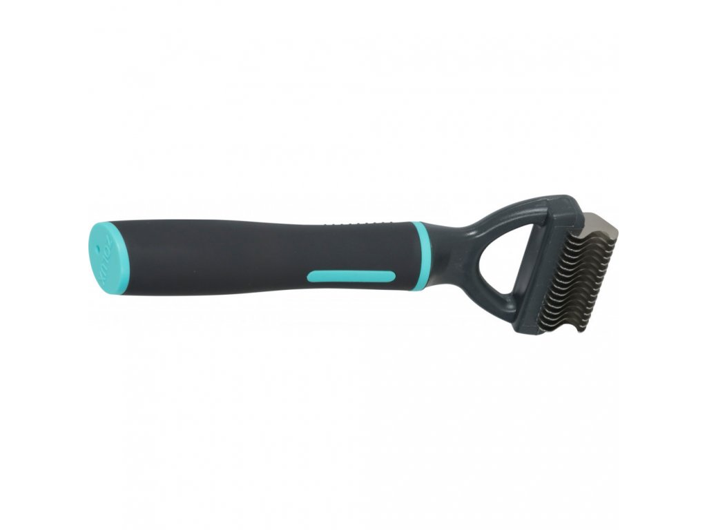 - Jemne odstraňuje a uvoľňuje malé uzlíky, pritom zároveň vyhladzuje vrchnú i spodnú vrstvu srsti; rozčesáva a zjemňuje srsť.