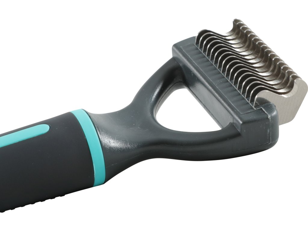 Prorezávacia hrable s 10 zubmi pre psov na strednú a dlhú srsť. Odstraňuje vypadnuté chĺpky, rozpletá a zjemňuje.