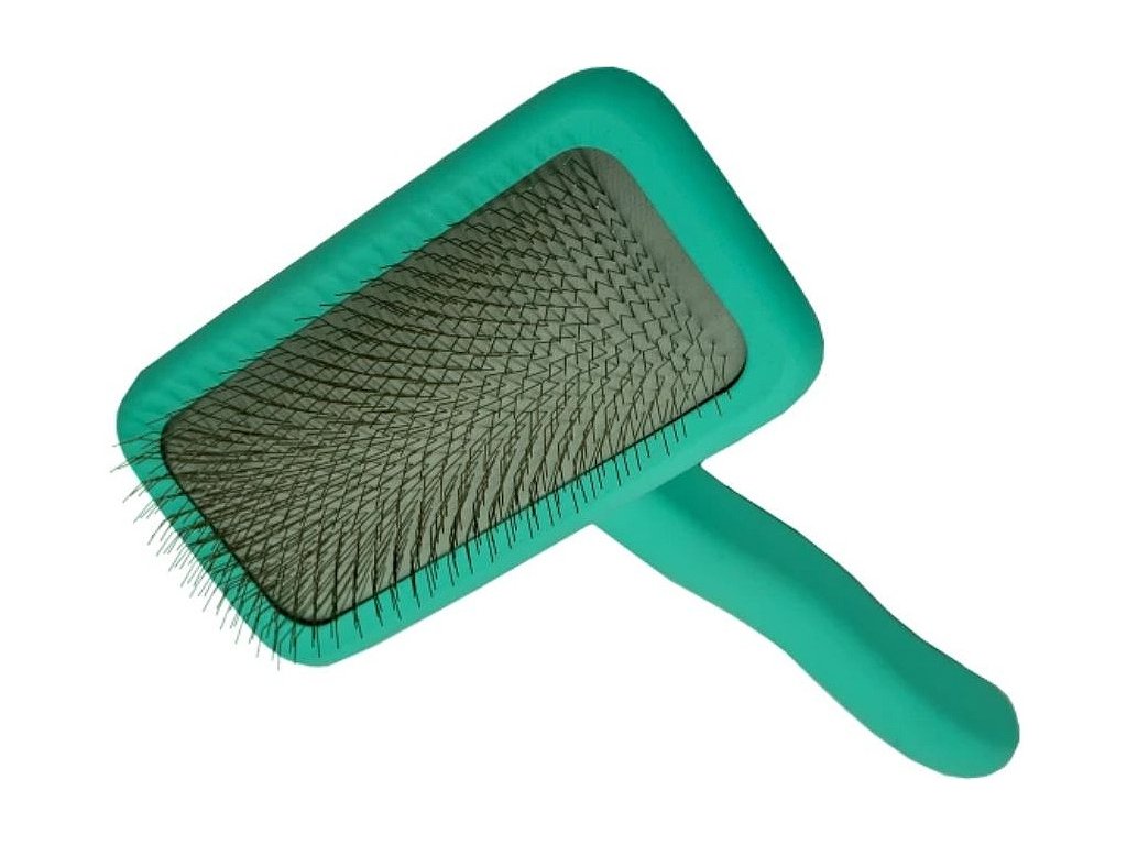Měkký a flexibilní polštářek kartáče umožňuje přirozené proudění vzduchu a lépe se přizpůsobuje tvaru těla zvířete. Zakřivené nerezové čepy s pevností 135° jemně nadzvedávají srst, odstraňují odumřelé chlupy a podsadu a zároveň vytvářejí nadýchaný, vzdušný a hebký vzhled. Kartáč je navržen tak, aby neškrábal ani nedráždil pokožku.
