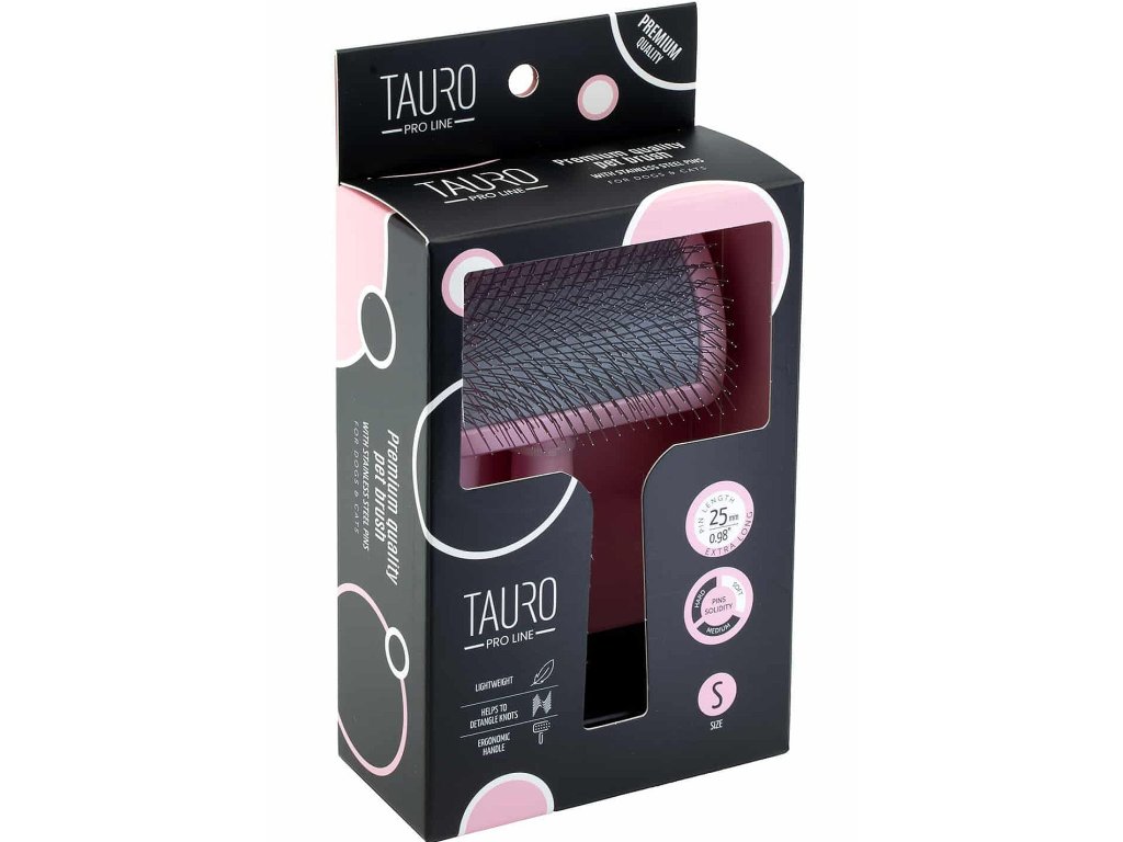 Profesionální zahnutý kartáč Tauro Pro Line je navržen pro důkladnou, ale šetrnou péči o srst psů i koček. Díky promyšlené konstrukci a kvalitním materiálům zajišťuje efektivní vyčesávání bez podráždění pokožky a je ideální jak pro domácí použití, tak pro profesionální groomery.