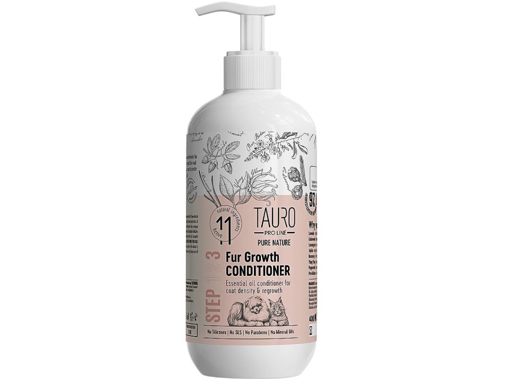Kondicionér Tauro Pro Line Pure Nature Fur Growth je speciálně navržen pro podporu růstu srsti a zlepšení její celkové kvality u psů a koček. Obsahuje kombinaci přírodních a esenciálních olejů, které pomáhají stimulovat vlasové folikuly, posilovat strukturu chlupů a vyživovat pokožku i srst.